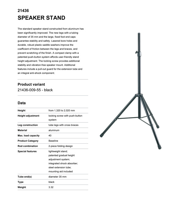 GS-approved for loads up to 35 kg. Wt: 3.2 kg, H: 1320/2020 mm.