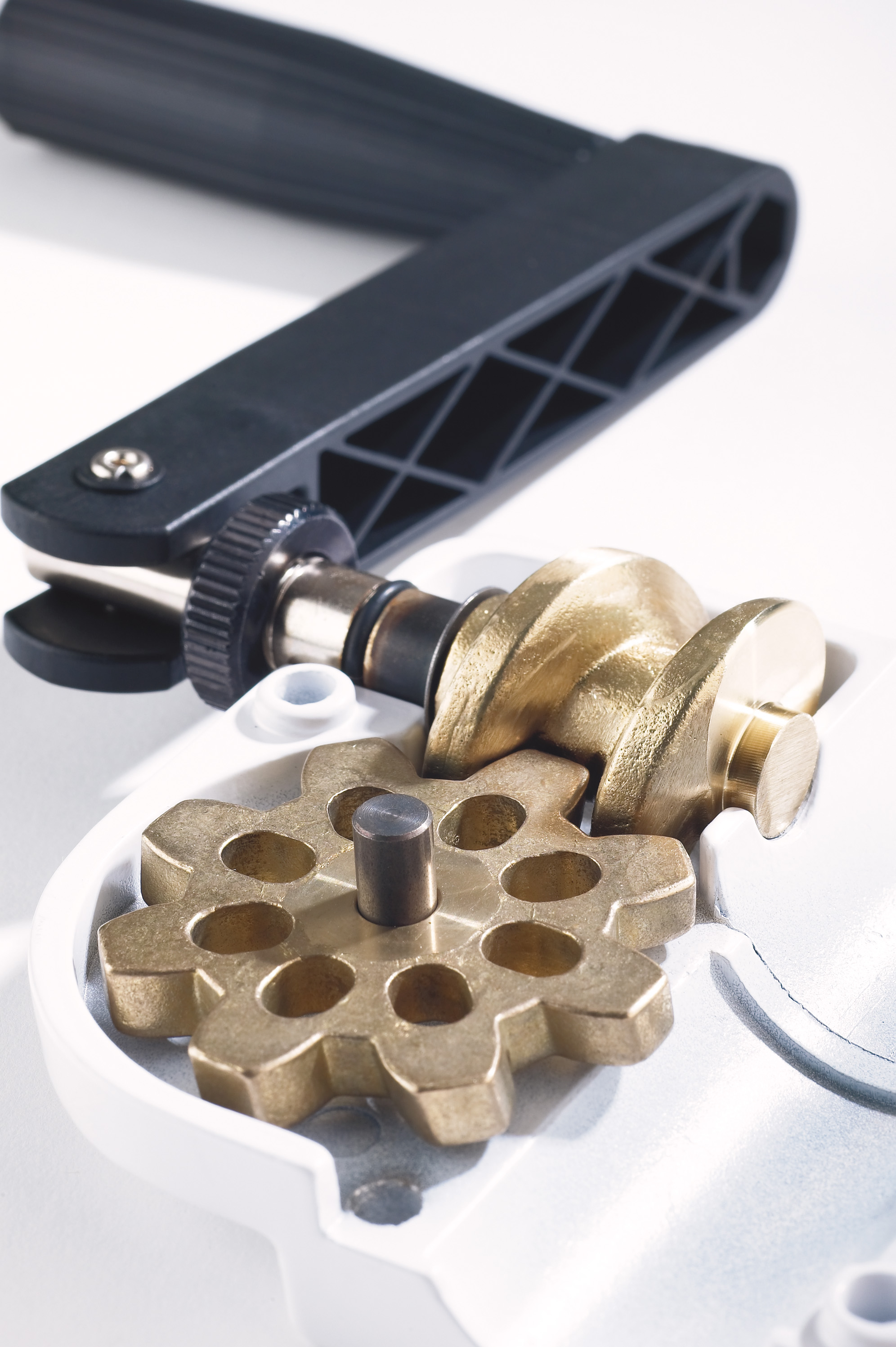 Extremely stable wide leg construction. Made of aluminum except for steel extension tube. Extension tube diameter 35 mm. For flange adapters or crossbars with M10 thread. Gradual height-adjustment by hand crank. Extra safety features provided by additional push-button and locking screw to avoid uncontrolled reverse motion.