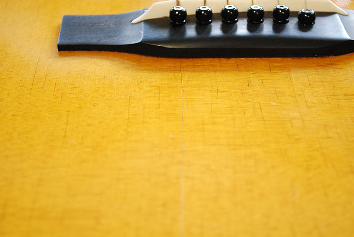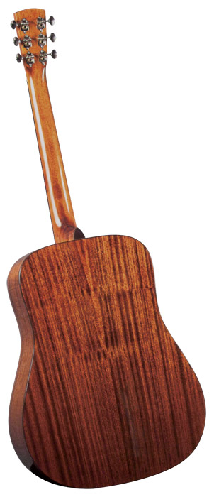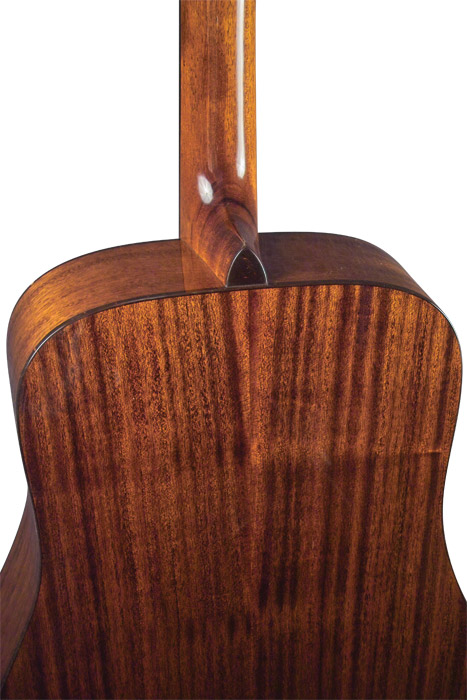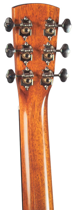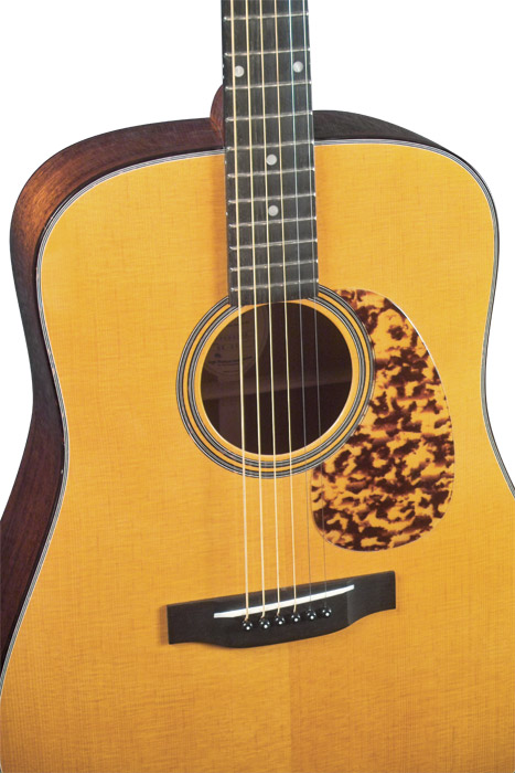 # Premium, select solid Sitka spruce top with hand-carved parabolic top braces in authentic prewar forward X-pattern and a maple bridge-plate