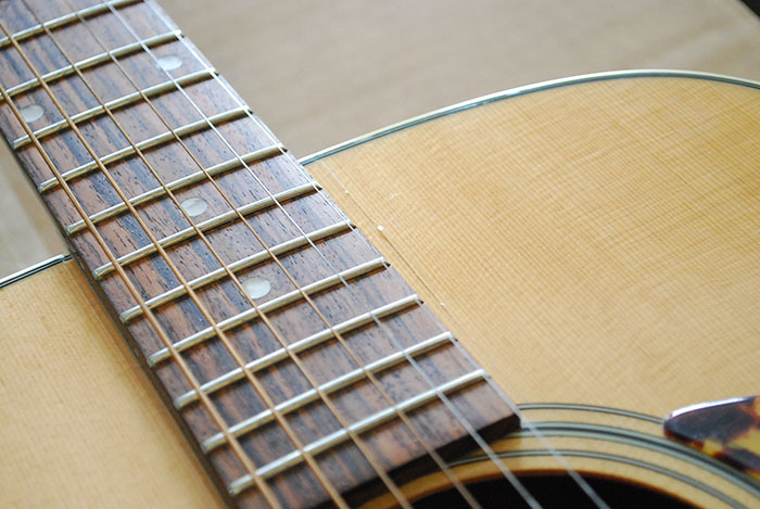 The Levinson Acoustic Guitars LD-25 is a dreadnought shaped steel string guitar from the manufacturer's Missouri series. The body is made of solid Sapelli mahogany with a top of solid Sitka spruce. Furthermore, the top of the Levinson Acoustic Guitars LD-25 has a feature called "Table Voicing": the top varies in thickness on certain spots. Thus the Levinson Acoustic Guitars LD-25 can vibrate more freely resulting in a much better responsiveness. Similar to its body, the Levinson Acoustic Guitars LD-25's neck is made of mahogany, the fingerboard on top consists of rosewood.