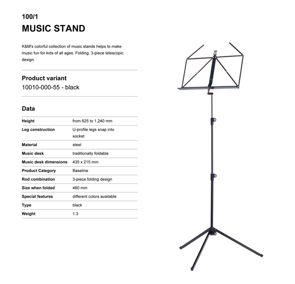 K&M;?s colorful collection of music stands helps to make music fun for kids of all ages. Folding, 3-piece telescopic design.